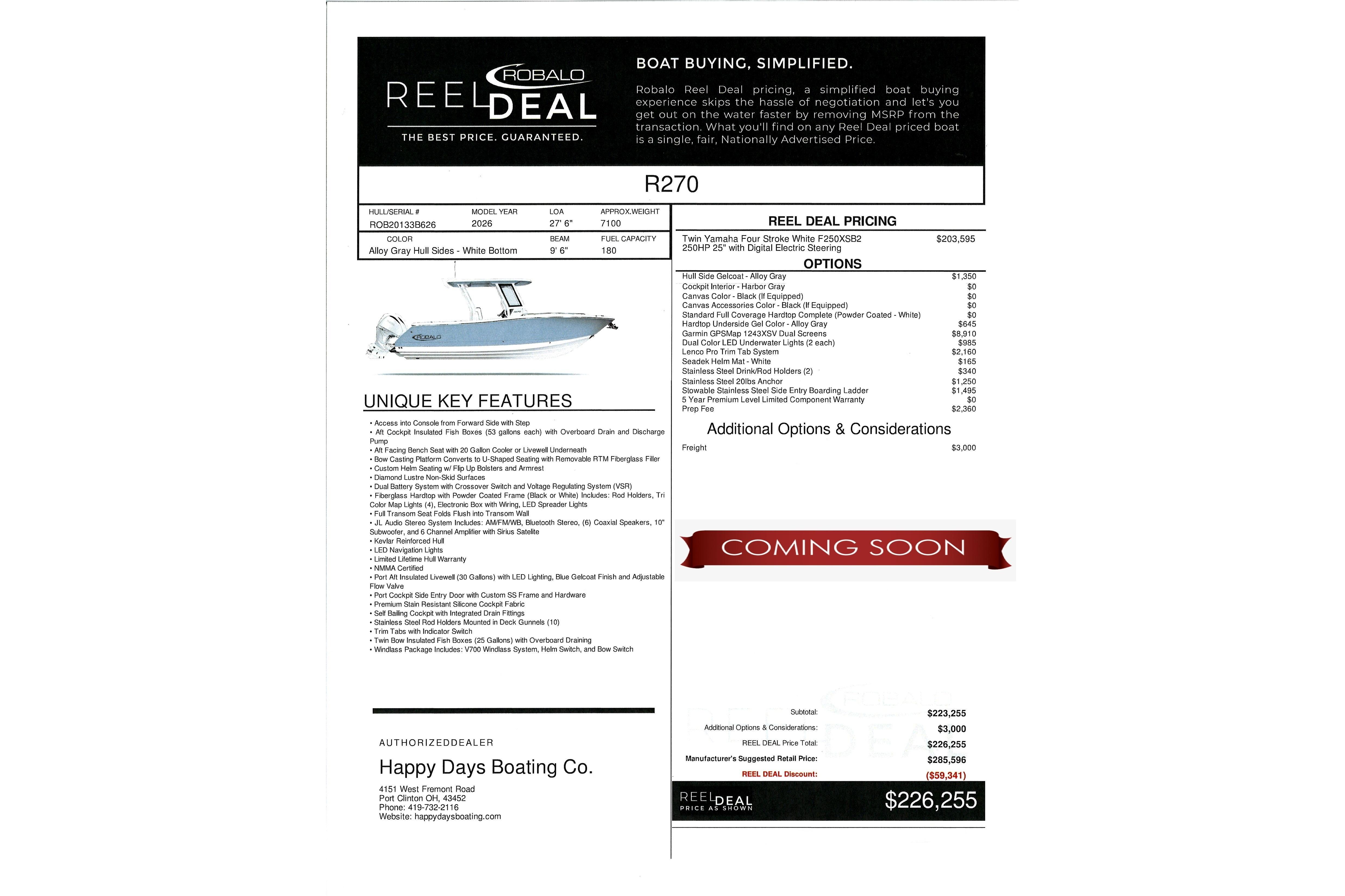 2026 Robalo R270 Center Console Port Clinton, OH 28' $226,225