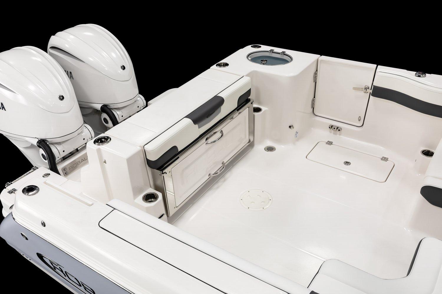The R277 offers a perfect blend of fishability, comfort, and durability, all while providing a smooth, confident ride in various conditions. Enjoy the benefits of the dual-console design, which features a complete wrap-around windshield, an oversized helm seat, and convertible seating. You'll also find all the fishing capabilities that Robalo is known for, including thoughtfully designed rod storage options with reel pads and toe rails for added stability while landing that next big catch.