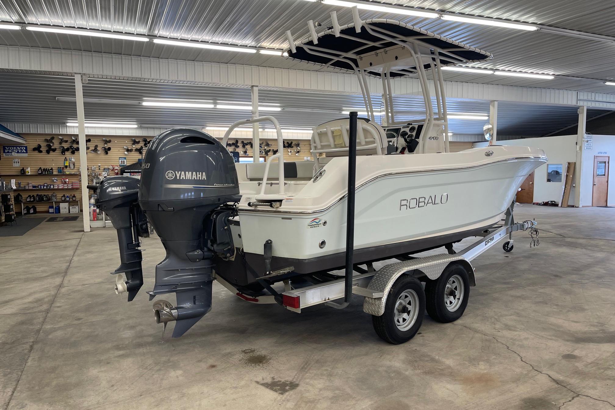 Sit down and make a checklist of exactly what you want in your next fishing boat. A headache free buying experience. Check. A space efficient interior design including an enclosed head. Check. Reputable, time-tested name brand. Check. Efficient overall performance. Check. One ride and you'll agree that the sensational R200 can turn anyone's wish list into reality. Powered by a F150 Yamaha and 9.9 Out board Engines.Packaged with an aluminum trailer that includes brakes, the R200 is a steal of a deal that rivals can't touch. Extensive rod storage, a multi-purpose interior, a powder coated leaning post, stainless steel hardware and Robalo's award winning style lines rank the R200 as a first-rate fishing boat.
