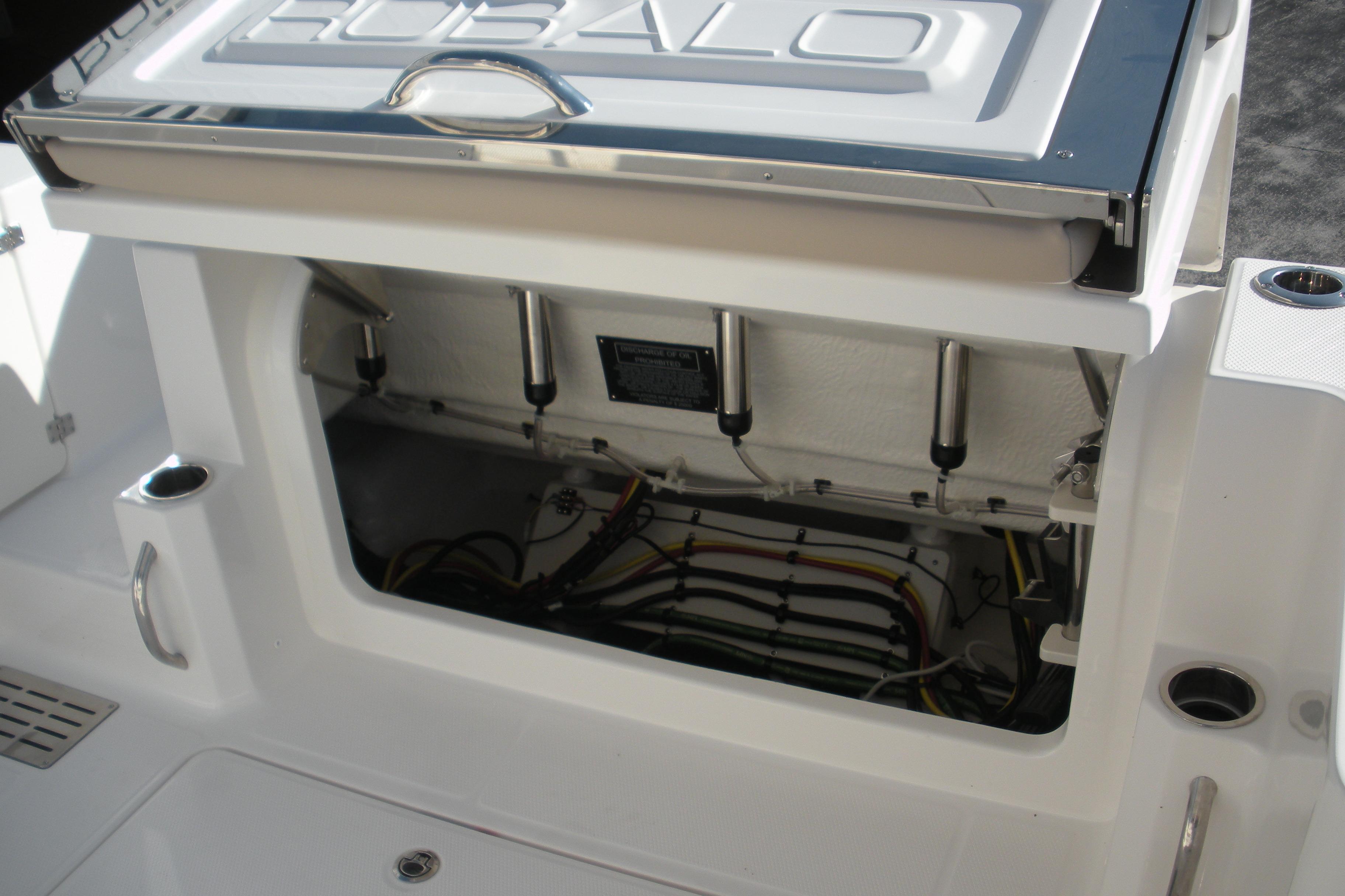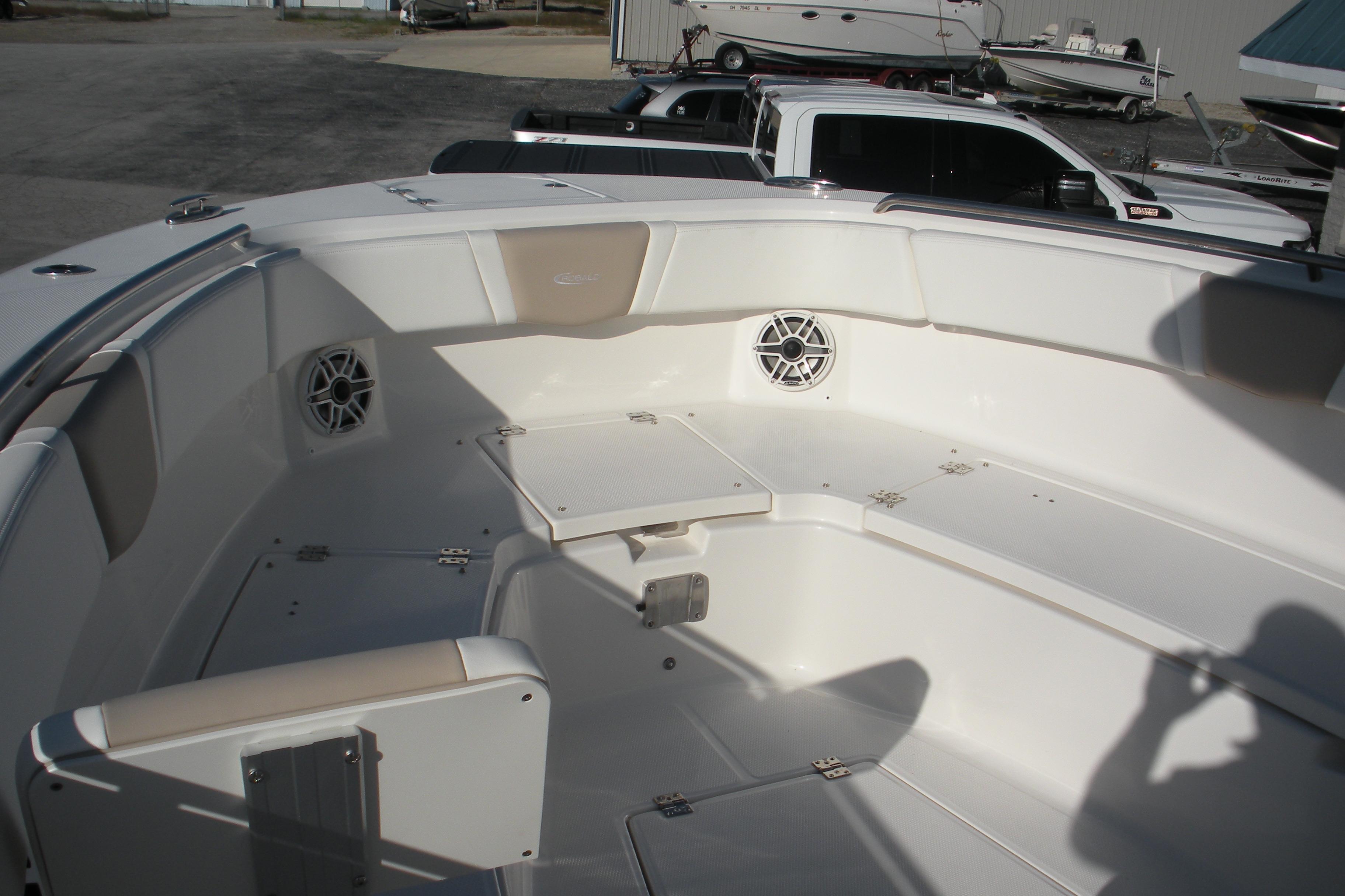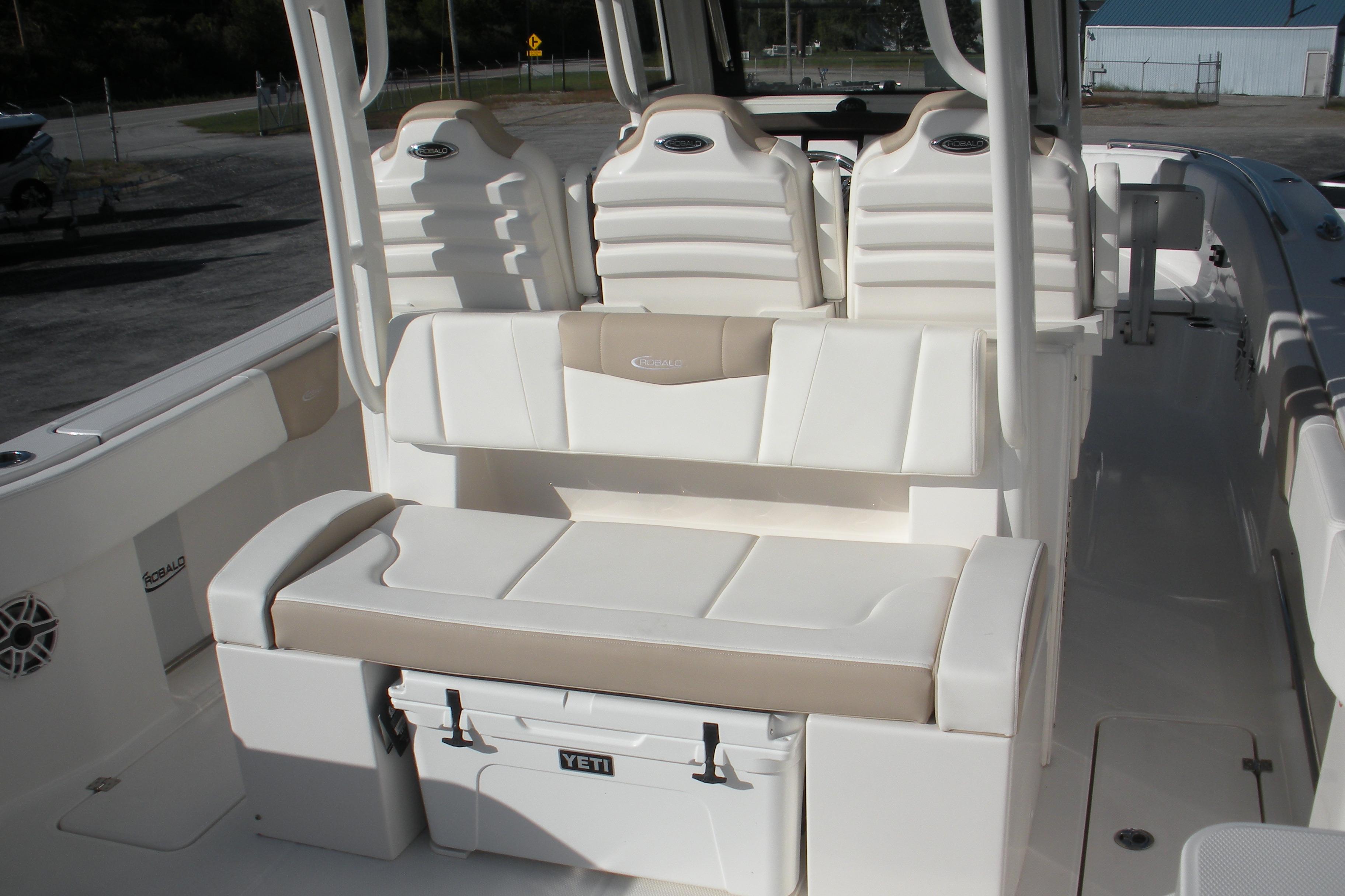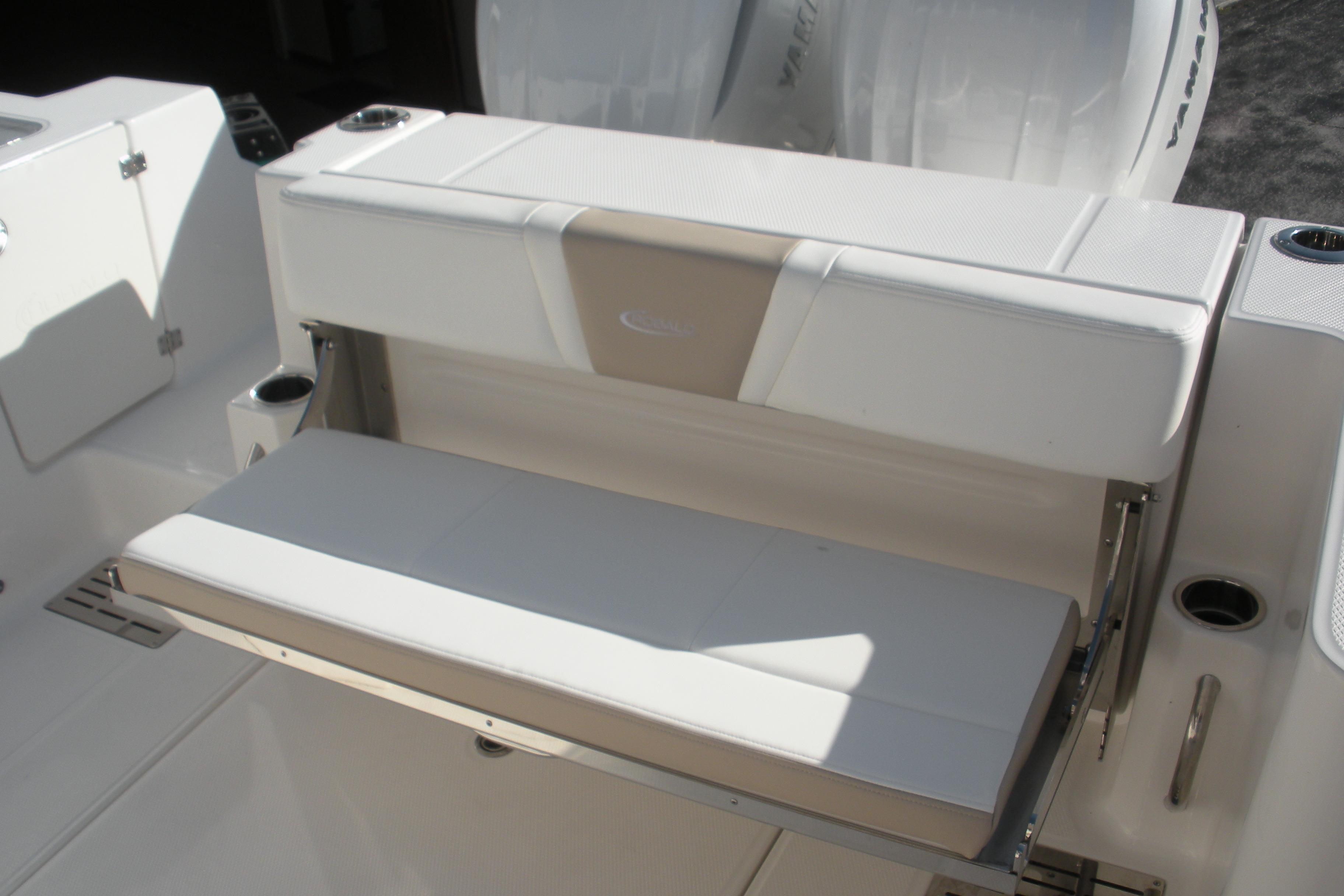 Options Include: Yamaha Helm Master EX with Maneuverability, Console/Helm Seat Cover, Dual Simrad NSS4/16, Simad VHF, Dual Color LED Underwater Lights (2), Seadek Helm Mat, Cabin Wood Flooring, (4) - Stainless Steel Drink/Rod Holders, Polished Stainless Steel Anchor.