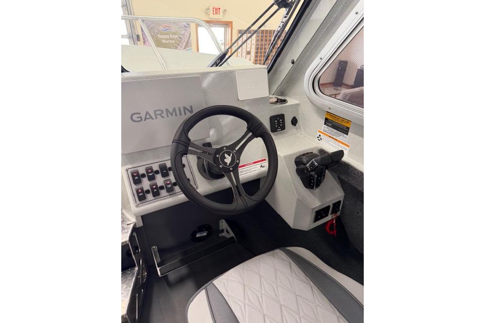 Options Include: Yamaha 9.9 Kicker,Remote Kicker Bracket, Yamaha Kicker Pre Rig w/Flush Mount Control, Painted Cabin/Full Side/Transom, Metallic Paint Upgrade, Twin Engine Pod, Transom w/Aerated  Livewell, Transom Door, 3-Step Boarding Ladder w/Grab Handle, Bow Mount Trolling Motor Bracket & Bow Rails, Diamond Deck Bow Anchor Guards, 7- Pole Rocket Launcher Rod Rack, 37" Storage Bench Seat w/Porta Potti, Curtain for Porta Potti, Bench to Bed Sleeper, Dual Auto Bilge Pumps w/Float Switches,  Electric Trim Tabs w/Indicator Switch, Anchor Pulpit, In-Floor Ros Storage, 2-Bank Battery Charger, Yamaha Twin DEC Pre-Rig a/Binnacle Control, Helm Master Steering w/Tilt Helm, Electronic Key Switch, Garmin GPSmap 1243xsv, CL5 Display, Radar Mount, Dual Group 27 Batteries, & More
