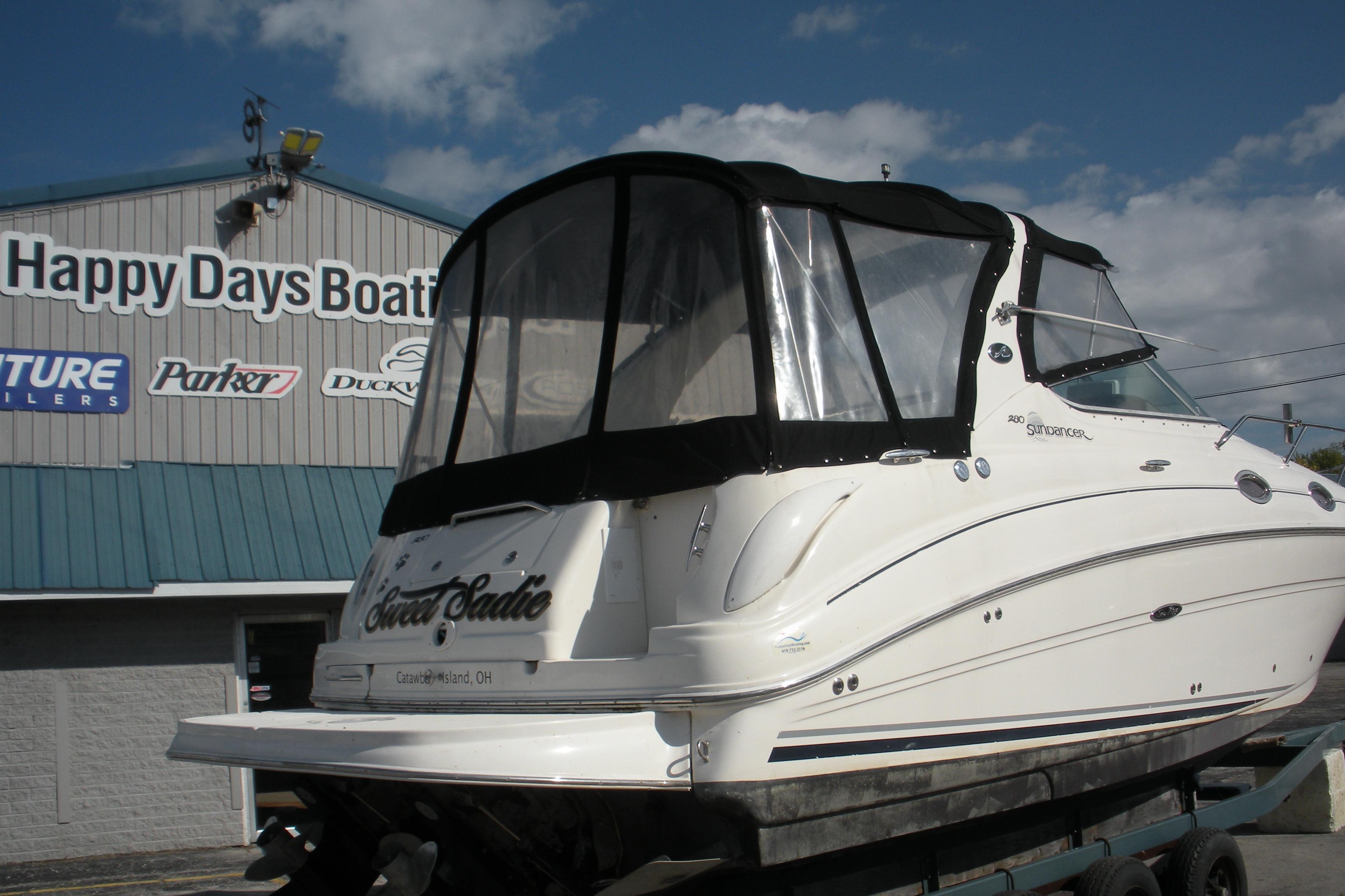 Introducing the 2005 Sea Ray 280 Sundancer, a stunning cruiser that combines elegance and performance. With an overall length of 31.8 feet, this vessel features a robust fiberglass hull designed in a Deep Vee shape, ensuring a smooth and stable ride on the water. Powered by dual MerCruiser 4.3L MPI engines, each delivering 220 horsepower, this boat promises exhilarating performance with a total of 270 hours of use. The inboard/outboard configuration and stern drive enhance maneuverability, making it a joy to navigate. The 280 Sundancer is equipped with a head for convenience, and its thoughtful design offers ample space for relaxation and entertainment. This used model retains its charm and functionality, making it an excellent choice for both seasoned sailors and newcomers alike. Experience the perfect blend of comfort and adventure with the Sea Ray 280 Sundancer.