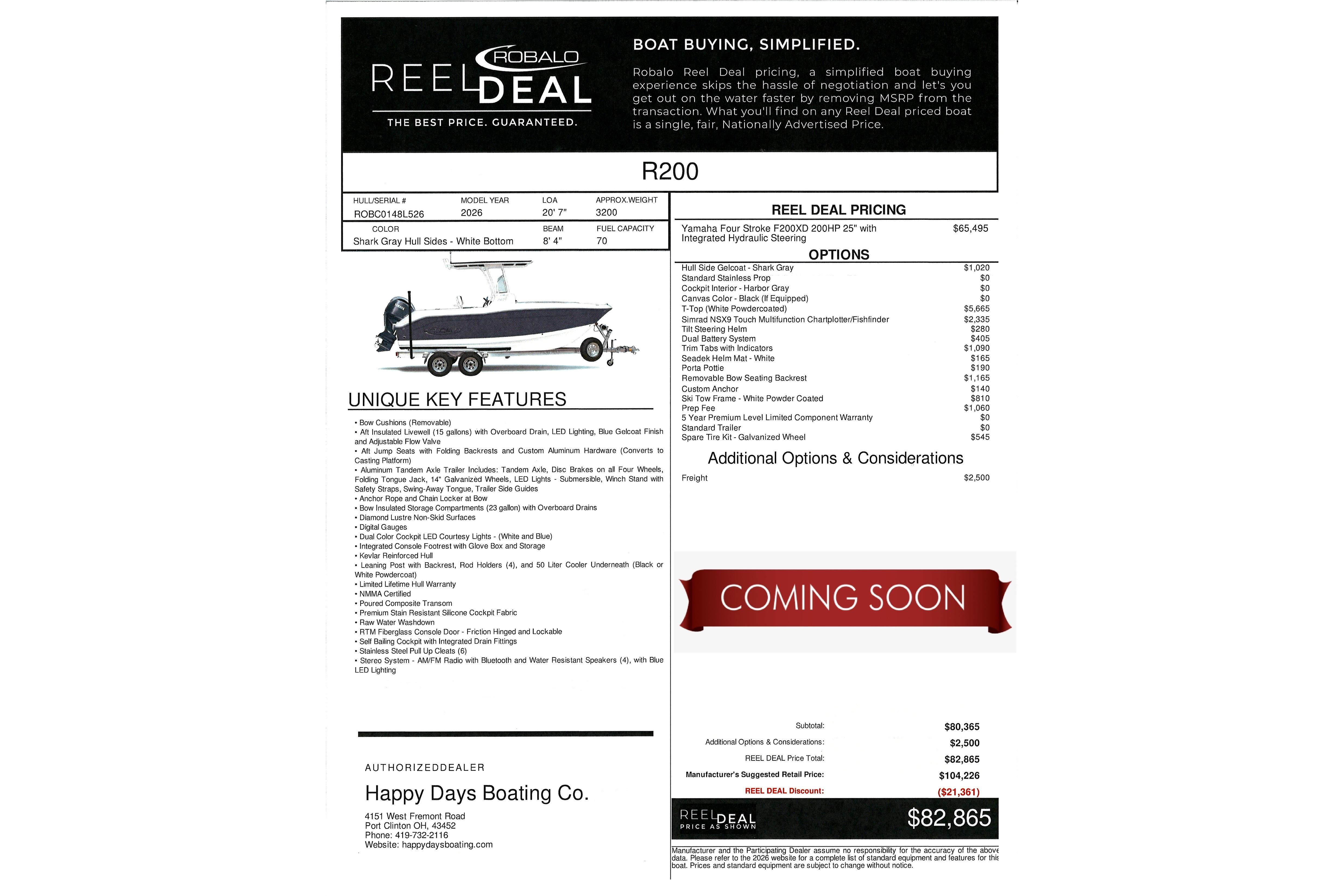 Happy Days Boating proudly offers a selection of Robalo boats, each representing the pinnacle of fishing excellence. From the sleek lines of the Center Consoles to the spacious layouts of the Dual Consoles, Robalo boats are designed with the angler in mind. Experience the thrill of fishing like never before with Robalo's unwavering commitment to quality, innovation, and the pursuit of perfection.